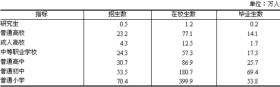 教育事業(yè)蓬勃發(fā)展。全年研究生教育在校研究生12149人,比上年增長(zhǎng)23.2%。普通高校在校生77.1萬(wàn)人,增長(zhǎng)19.3%。普通高中、初中、小學(xué)在校生分別達(dá)86.9萬(wàn)人、180.7萬(wàn)人和399.9萬(wàn)人。特殊教育在校生18625人。擁有幼兒園5848所,在園幼兒80.6萬(wàn)人。高等教育毛入學(xué)率達(dá)到21.8%,比上年提高1.4個(gè)百分點(diǎn);普通高考錄取率59.6%;初中畢業(yè)升高中段的比例為77.4%,提高4.5個(gè)百分點(diǎn);初中適齡人口入學(xué)率為95.5%,提高1.5個(gè)百分點(diǎn);小學(xué)適齡兒童入學(xué)率為99.6%,提高0.6個(gè)百分點(diǎn)。各類民辦學(xué)校662所,在校學(xué)生74.8萬(wàn)人,其中民辦普通高校39所。