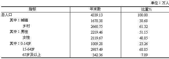 人民生活水平不斷提高。全省農(nóng)民人均純收入3585元,比上年增長(zhǎng)9.8%;城鎮(zhèn)居民人均可支配收入達(dá)9551元,增長(zhǎng)10.8%。農(nóng)村居民家庭恩格爾系數(shù)為49.3%;城鎮(zhèn)居民家庭恩格爾系數(shù)為39.7%,比上年下降1.2個(gè)百分點(diǎn)。年末城鄉(xiāng)居民人均住房使用面積分別達(dá)到29.1平方米和35.9平方米,比上年末分別增加1.2平方米和1.8平方米。 就業(yè)再就業(yè)工作穩(wěn)步推進(jìn)。年末從業(yè)人員2321.1萬(wàn)人,比上年增加44.4萬(wàn)人,其中:第一產(chǎn)業(yè)907.4萬(wàn)人,減少0.1萬(wàn)人;第二產(chǎn)業(yè)639.5萬(wàn)人,增加20.0萬(wàn)人;第三產(chǎn)業(yè)774.2萬(wàn)人,增加24.5萬(wàn)人。全年城鎮(zhèn)新增就業(yè)人員44.5萬(wàn)人,城鎮(zhèn)凈增就業(yè)人員30.0萬(wàn)人;下崗失業(yè)人員實(shí)現(xiàn)再就業(yè)23.3萬(wàn)人,其中“4050”人員4.1萬(wàn)人。共發(fā)放小額擔(dān)保貸款11.61億元,增長(zhǎng)1.3倍,直接扶持下崗失業(yè)人員自主創(chuàng)業(yè)2.46萬(wàn)人,帶動(dòng)就業(yè)人數(shù)7.23萬(wàn)人。農(nóng)村勞動(dòng)力轉(zhuǎn)移培訓(xùn)人員56.8萬(wàn)人,跨省勞務(wù)輸出達(dá)到562.9萬(wàn)人。年末城鎮(zhèn)登記失業(yè)率為3.64%。 社會(huì)保障事業(yè)繼續(xù)完善。年末全省參加城鎮(zhèn)基本養(yǎng)老保險(xiǎn)人數(shù)為415.0萬(wàn)人,比上年末增加27.6萬(wàn)人。其中參保職工303.4萬(wàn)人,參保離退休人員111.6萬(wàn)人。全年共發(fā)放城鎮(zhèn)居民最低生活保障金8.64億元,享受最低生活保障100.2萬(wàn)人。農(nóng)村低保制度全面建立,享受低保人數(shù)104.7萬(wàn)人,發(fā)放農(nóng)村低保金2.46億元。經(jīng)濟(jì)適用住房竣工面積74.5萬(wàn)平方米,廉租房受益人數(shù)19212戶。參加城鎮(zhèn)醫(yī)療保險(xiǎn)的人數(shù)為313.3萬(wàn)人,增加36.6萬(wàn)人。參加農(nóng)村新型農(nóng)村合作醫(yī)療的人數(shù)為1221萬(wàn)人,農(nóng)民參合率達(dá)85.0%,參合縣比率40.4%,籌集合作醫(yī)療資金63650萬(wàn)元。農(nóng)村困難群眾大病醫(yī)療救助人數(shù)45.3萬(wàn)人,救助資金5700萬(wàn)元。城市困難群眾大病醫(yī)療救助人數(shù)10.5萬(wàn)人,救助資金4500萬(wàn)元。參加失業(yè)保險(xiǎn)的人數(shù)為241.1萬(wàn)人,增加4.5萬(wàn)人。參加工傷保險(xiǎn)的人數(shù)為207.9萬(wàn)人,增加54.3萬(wàn)人。參加生育保險(xiǎn)的人數(shù)為123.2萬(wàn)人,增加5.4萬(wàn)人。 社會(huì)福利事業(yè)穩(wěn)步發(fā)展。年末共有各類收養(yǎng)性社會(huì)福利單位2066個(gè),提供床位14.7萬(wàn)張,收養(yǎng)人數(shù)13.4萬(wàn)人,臨時(shí)救濟(jì)困難戶達(dá)3.65萬(wàn)人次。城鎮(zhèn)建立各種社區(qū)服務(wù)設(shè)施3053個(gè)。全年通過(guò)銷售社會(huì)福利彩票籌集社會(huì)福利資金5.28億元,接收社會(huì)捐贈(zèng)款4809萬(wàn)元。