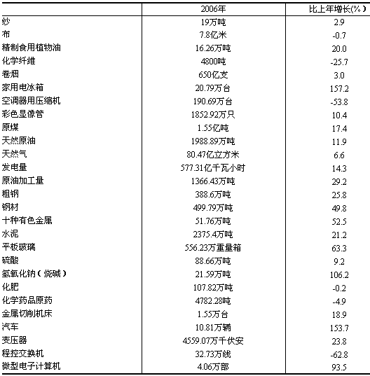 工業(yè)生產(chǎn)快速增長(zhǎng)。規(guī)模以上工業(yè)企業(yè)完成工業(yè)增加值1571.8億元,比上年增長(zhǎng)18.4%。分輕重工業(yè)看,重工業(yè)增加值1305.85億元,增長(zhǎng)20.4%;輕工業(yè)265.95億元,增長(zhǎng)13%。全年工業(yè)產(chǎn)品銷(xiāo)售率為98.12%,比上年下降0.3個(gè)百分點(diǎn)。 支柱產(chǎn)業(yè)發(fā)展迅速,對(duì)工業(yè)拉動(dòng)作用明顯。八大工業(yè)支柱產(chǎn)業(yè)完成工業(yè)總產(chǎn)值4258.03億元,比上年增長(zhǎng)29.6%,拉動(dòng)規(guī)模以上工業(yè)增長(zhǎng)28.9個(gè)百分點(diǎn)。其中能源化工工業(yè)完成工業(yè)總產(chǎn)值2098.53億元,比上年增長(zhǎng)34.4%,拉動(dòng)規(guī)模以上工業(yè)增長(zhǎng)16個(gè)百分點(diǎn);裝備制造業(yè)904.33億元,增長(zhǎng)29.6%,拉動(dòng)規(guī)模以上工業(yè)增長(zhǎng)6.1個(gè)百分點(diǎn);有色冶金工業(yè)470.19億元,增長(zhǎng)30.1%,拉動(dòng)規(guī)模以上工業(yè)增長(zhǎng)3.2個(gè)百分點(diǎn);其他支柱產(chǎn)業(yè)中食品工業(yè)增長(zhǎng)23%,通信設(shè)備計(jì)算機(jī)及其他電子設(shè)備制造業(yè)增長(zhǎng)10.7%,醫(yī)藥制造業(yè)增長(zhǎng)7.2%,非金屬礦物制品業(yè)增長(zhǎng)34.4%,紡織服裝工業(yè)增長(zhǎng)14.7%。 規(guī)模以上工業(yè)企業(yè)綜合經(jīng)濟(jì)效益水平大幅度提高。全年實(shí)現(xiàn)銷(xiāo)售收入4259.78億元,比上年增長(zhǎng)32.5%;實(shí)現(xiàn)利潤(rùn)513.64億元,增長(zhǎng)31.6%;稅金總額317.14億元,增長(zhǎng)31.2%;工業(yè)企業(yè)經(jīng)濟(jì)效益綜合指數(shù)229.29,比上年提高24.6個(gè)百分點(diǎn)。 在統(tǒng)計(jì)的39個(gè)工業(yè)行業(yè)大類(lèi)中,36個(gè)行業(yè)總產(chǎn)值比上年增長(zhǎng)。其中石油和天然氣開(kāi)采業(yè)總產(chǎn)值756.73億元,比上年增長(zhǎng)47.6%;石油加工、煉焦及核燃料加工業(yè)605.07億元,增長(zhǎng)38.1%;交通運(yùn)輸設(shè)備制造業(yè)405.55億元,增長(zhǎng)40.2%;電力、熱力的生產(chǎn)和供應(yīng)業(yè)316.45億元,增長(zhǎng)13.4%;煤炭開(kāi)采和采選業(yè)228.48億元,增長(zhǎng)26.2%;黑色金屬冶煉及壓延加工業(yè)191.43億元,增長(zhǎng)27.8%。主要工業(yè)產(chǎn)品多數(shù)保持較快增長(zhǎng),規(guī)模以上工業(yè)主要產(chǎn)品產(chǎn)量如下: