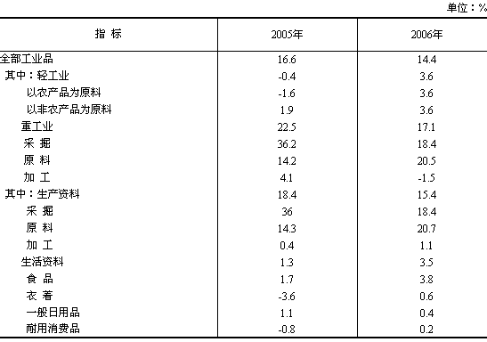 表2:工業(yè)品出廠價(jià)格比上年漲跌幅度