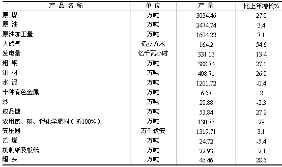 規(guī)模以上工業(yè)企業(yè)原油產(chǎn)量比上年增長(zhǎng)3.4%,原油加工量增長(zhǎng)7.1%,原煤產(chǎn)量增長(zhǎng)27.8%,天然氣產(chǎn)量增長(zhǎng)54.6%,發(fā)電量增長(zhǎng)13.4%,鋼材產(chǎn)量增長(zhǎng)26.8%。