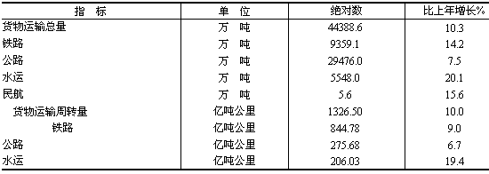 全年交通運(yùn)輸、倉儲及郵電通信業(yè)增加值256.04億元,增長8.6%。
