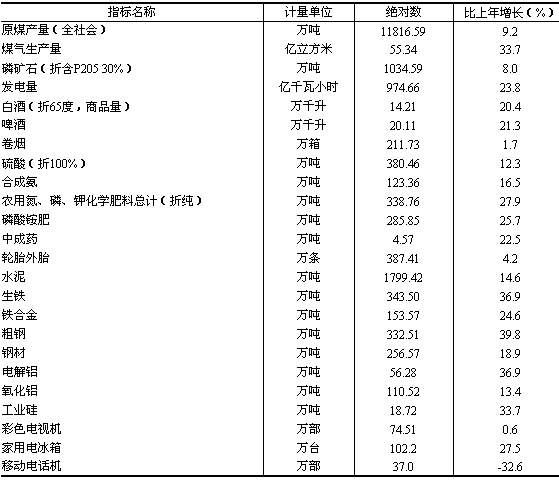 表5:2006年規(guī)模以上工業(yè)主要產(chǎn)品產(chǎn)量