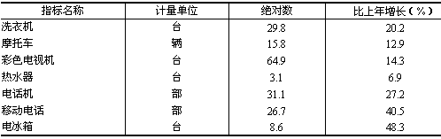 表20:2006年每百戶城鎮(zhèn)居民家庭年末耐用消費(fèi)品擁有量