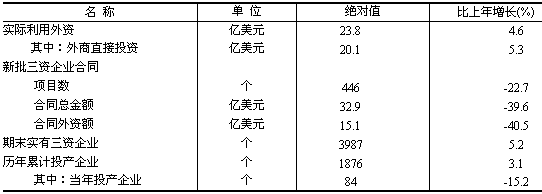利用外資保持一定規(guī)模。實(shí)際利用外資23.8億美元,增長(zhǎng)4.6%,其中外商直接投資20.1億美元,增長(zhǎng)5.3%。大項(xiàng)目帶動(dòng)作用明顯,總投資500萬美元以上項(xiàng)目到位外資增長(zhǎng)8.3%,占全省外商直接投資比重達(dá)86.2%。新批合同446個(gè),合同外資額15.1億美元,比上年下降40.5%。