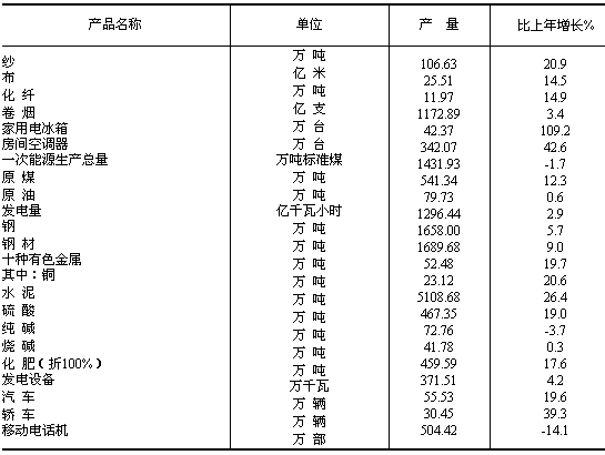 表2 2006年主要工業(yè)產(chǎn)品產(chǎn)量