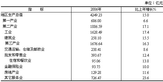 %。按常住人口計算,當年人均GDP達到15625元,比上年增長14.7 %。 產(chǎn)業(yè)結(jié)構(gòu)調(diào)整取得明顯成效。三次產(chǎn)業(yè)結(jié)構(gòu)由2005年的17.3:43.6