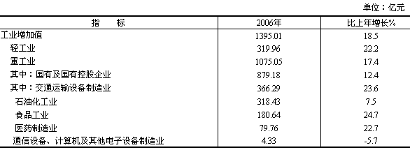 %。 支柱和優(yōu)勢行業(yè)對經(jīng)濟發(fā)展的支撐作用進一步增強。在全省規(guī)模以上工業(yè)中,交通運輸設(shè)備制造,石油化工,食品加工,醫(yī)藥制造和通信設(shè)備、計算機及其它電子設(shè)備制造業(yè)共完成增加值949.45億元,占全部規(guī)模以上工業(yè)增加值的比重達到68.1%,比上年提高0.5個百分點;實現(xiàn)利潤155.45億元,比重達到77.3%。 民營工業(yè)快速發(fā)展。截至2006年末,全省規(guī)模以上工業(yè)企業(yè)中已有民營企業(yè)1941戶,比上年末增加213戶,實現(xiàn)工業(yè)增加值348.62億元,按可比價格計算,比上年增長33.1%,增幅高于全省規(guī)模以上工業(yè)平均水平14.6個百分點;實現(xiàn)利潤47.71億元,比上年增長39.2%。 建筑業(yè)穩(wěn)步發(fā)展。全年四級及以上資質(zhì)建筑企業(yè)實現(xiàn)利稅總額32.46億元,比上年增長59.0