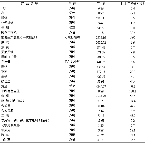 表5:主要工業(yè)產(chǎn)品產(chǎn)量