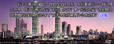 | 出于拓展腹地的迫切需要,廣東于2004年倡導(dǎo)并發(fā)起了構(gòu)建泛珠三角區(qū)域合作的攻略。幾年來(lái),由珠江流域11個(gè)省區(qū)聯(lián)手策動(dòng)的泛珠合作,已成為實(shí)現(xiàn)合作各方共同利益、促進(jìn)港澳繁榮穩(wěn)定、推動(dòng)?xùn)|中西部協(xié)調(diào)發(fā)展的重要載體和戰(zhàn)略平臺(tái),對(duì)國(guó)內(nèi)外區(qū)域競(jìng)爭(zhēng)和發(fā)展大局產(chǎn)生重大而積極的影響。[詳情] | |