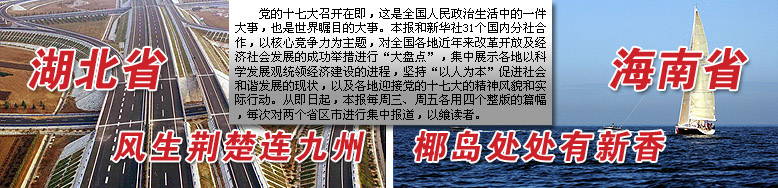 綜觀過(guò)去五年,湖北經(jīng)濟(jì)社會(huì)發(fā)展出現(xiàn)可喜變化,較好地實(shí)現(xiàn)了“三年有明顯變化,五至七年有較大變化”的總體要求,成為湖北歷史上發(fā)展最快最好的時(shí)期之一。 湖北省發(fā)展和改革委員會(huì)主任李宗柏說(shuō),從2003年至2006年,湖北省生產(chǎn)總值年均增長(zhǎng)率達(dá)到11.3%,比同期全國(guó)平均增長(zhǎng)水平高1.1個(gè)百分點(diǎn),今年上半年全省GDP增長(zhǎng)13.3%,是十年來(lái)同期增長(zhǎng)最快的時(shí)期。[詳情] | |