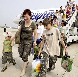 7月29日,一架滿載俄羅斯游客的圖-154飛機(jī)降落在山海關(guān)機(jī)場,秦皇島首條國際航線開通。據(jù)悉,明年奧運(yùn)會前,山海關(guān)機(jī)場還將開通日、韓等多條國際航線。CFP圖片