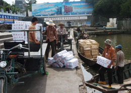 廣西東興市邊民在北侖河搬運(yùn)從越南進(jìn)口的貨物。新華社記者:周華 攝