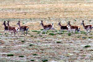 藏原羚奔跑在黃河發(fā)源地。攝影/本報記者 侯德強
