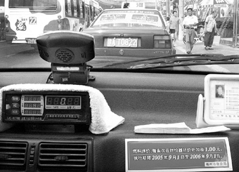 2007年8月1日,鄭州市西大街。鄭州市出租車停止?fàn)I運第三天早晨,一些出租車開始零星上街載客。但街頭仍然可見不掛牌照的出租車,另一些出租車的前擋風(fēng)玻璃上則掛著“今日休息”的牌子。 從7月30日上午6時30分起,鄭州市10000余輛出租車開始集體停止運營,市內(nèi)出租交通陷入癱瘓狀態(tài)。