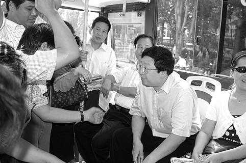 · ?谑蓄I(lǐng)導(dǎo)體驗(yàn)“無(wú)車日”,與市民一起坐公交 2007-09-17
