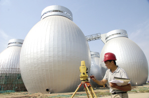 國(guó)慶前,小紅門(mén)污水處理廠內(nèi)5個(gè)銀灰色的卵形污泥消化池將完成外部裝修。市政四公司表示, 消化池將對(duì)污水處理過(guò)程中產(chǎn)生的污泥進(jìn)行消化處理,使污泥的衛(wèi)生指標(biāo)提高,減少細(xì)菌及臭氣,避免對(duì)環(huán)境造成二次污染。