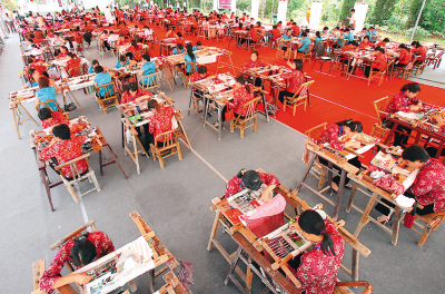 9月26日,中國(guó)刺繡藝術(shù)館在蘇州市高新區(qū)鎮(zhèn)湖街道建成開(kāi)館。在鎮(zhèn)湖有8000繡娘從事刺繡,其中有10人成為高級(jí)工藝美術(shù)師,1人成為省級(jí)工藝美術(shù)大師。這次建成的中國(guó)刺繡藝術(shù)館設(shè)有四大名繡展廳、名人大師刺繡作品展廳、刺繡歷史館等多個(gè)功能區(qū)。 [圖·左上]
