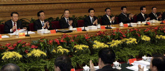 | 10月17日,中國共產(chǎn)黨第十七次全國代表大會主席團(tuán)在北京人民大會堂舉行第二次會議。胡錦濤、吳邦國、溫家寶、賈慶林、曾慶紅、吳官正、李長春、羅干等出席會議。 |