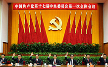 中國(guó)共產(chǎn)黨第十七屆中央委員會(huì)第一次全體會(huì)議公報(bào) (2007年10月22日中國(guó)共產(chǎn)黨第十七屆中央委員會(huì)第一次全體會(huì)議通過(guò)) 中國(guó)共產(chǎn)黨第十七屆中央委員會(huì)第一次全體會(huì)議,于2007年10月22日在北京舉行。 出席會(huì)議的有中央委員204人,候補(bǔ)中央委員l66人。中央紀(jì)律檢查委員會(huì)委員列席會(huì)議。 胡錦濤同志主持會(huì)議并作了重要講話。[詳情] |