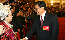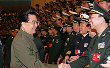 | 胡錦濤會(huì)見(jiàn)解放軍和武警部隊(duì)出席黨的十七大全體代表 |