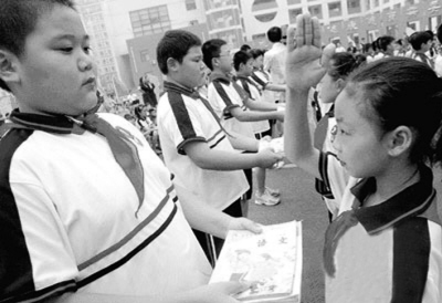 河南省實(shí)驗(yàn)小學(xué)外國語分校高年級(jí)同學(xué)把用過的課本送給弟弟妹妹們。 | 黨的十七大再次明確要求發(fā)展循環(huán)經(jīng)濟(jì),并提出了建設(shè)生態(tài)文明的新目標(biāo)。然而,“目前我國有在校中小學(xué)生2億多人,以每個(gè)學(xué)生一年兩學(xué)期用15冊(cè)課本計(jì)算,每年要用30多億冊(cè)課本,消費(fèi)紙張達(dá)55萬噸之多,需要砍伐1100多萬棵大樹!比珖䥇f(xié)常委朱永新算過這樣一筆賬。循環(huán)使用教科書既有利于節(jié)約,又有利于環(huán)保,國外也有很多可借鑒的成功經(jīng)驗(yàn),有識(shí)者呼吁多年,為什么推廣不了?究竟難在哪里? 作為北京四中即將畢業(yè)的高三學(xué)生,近日筆者無意中對(duì)自己使用過的教科書做了一點(diǎn)統(tǒng)計(jì):從小學(xué)到高中畢業(yè)的12年共24個(gè)學(xué)期當(dāng)中,所使用的課本大約216本,共需人民幣約1622.71元。如果將所學(xué)過的課本重疊地堆放在一起的話,它的高度恐怕不會(huì)低于2米。有數(shù)據(jù)顯示,目前我國已經(jīng)成為世界上紙和紙板第二大消費(fèi)國。生產(chǎn)一噸文化用紙要消耗生長20至40年的樹木20多棵,用水100噸、電600度、煤1.2噸、化工原料300公斤、同時(shí)產(chǎn)生污水300噸。就是說,造紙用紙不僅有能源消耗問題,而且伴生環(huán)境污染。我國原本就是一個(gè)森林資源非常匱乏的國家,如果我們?cè)龠@樣大量地消耗紙張的話,那么不遠(yuǎn)的將來我們整片的森林將變成荒山禿嶺。 筆者在網(wǎng)上搜索了教科書循環(huán)使用的有關(guān)資料,發(fā)現(xiàn)教科書循環(huán)使用在國外早已實(shí)行了很多年,在我國利在千秋卻起步艱難。