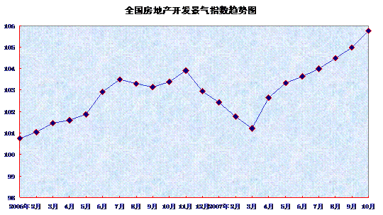 10月份,“國房景氣指數(shù)”為105.74,比9月份上升0.75點(diǎn),同比上升2.34點(diǎn)。