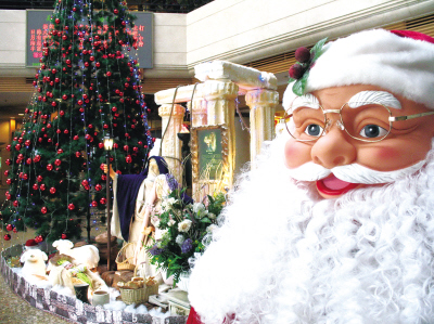 臨近圣誕節(jié),全國(guó)各地的商家紛紛開始提前備戰(zhàn)這個(gè)營(yíng)銷旺季。圖為近日,濟(jì)南濼源大街一家酒店大堂內(nèi)已布置了精美的圣誕樹和圣誕老人等,以聚斂人氣。