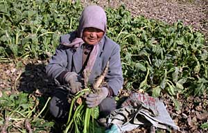 | 因水污染糖蘿卜長得比大拇指頭粗不了多少。本報(bào)記者 王志恒