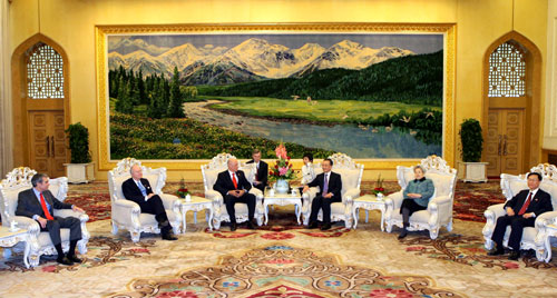 溫家寶說,中美經貿合作是世界上最大的發(fā)展中國家和最大的發(fā)達國家之間的合作,其作用和影響極大。在經濟全球化背景下,中美利益交織融合從未像今天這樣緊密,相互依存程度不斷加深。中美經貿關系的平穩(wěn)發(fā)展不僅惠及兩國人民,而且對全球經濟的發(fā)展也有重大意義。中美應攜手應對全球化帶來的機遇和挑戰(zhàn),加強互利合作,實現共同發(fā)展,推動經濟全球化朝著均衡、普惠、共贏方向發(fā)展。