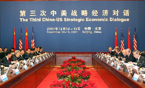 12月12日,第三次中美戰(zhàn)略經(jīng)濟對話在北京開幕。中國國務(wù)院副總理吳儀和美國財政部部長保爾森作為兩國元首特別代表共同主持對話。新華社記者 高潔