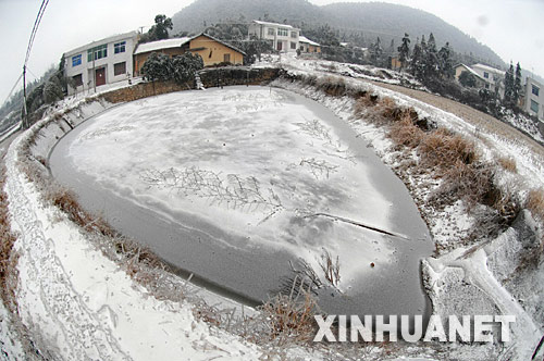 | 這是湖南寧鄉(xiāng)縣境內(nèi)一處冰凍的水塘(1月25日攝)。 | |