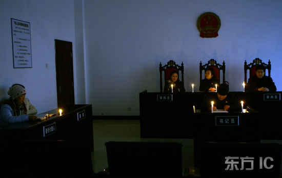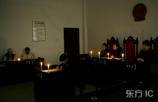 徐奕和兩名陪審員、書記員點燃了7支蠟燭,庭審在搖曳的燭光中進行。沒電,電腦不能使用,書記員小范于是用手寫記下了5頁庭審筆錄,手凍得紅腫。這次開庭一共進行了兩個小時。(來源:北京青年報) | |