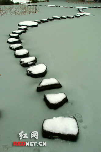在湖南烈士公園,冰雪這個天然的雕塑家,讓大地平添許多奇特圖案,或具象,或抽象,鬼斧神工,情態(tài)各異。