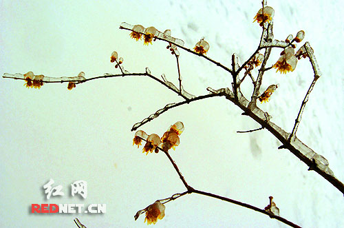 長沙再遭大雪襲擊 汽車行進中掛滿冰棱