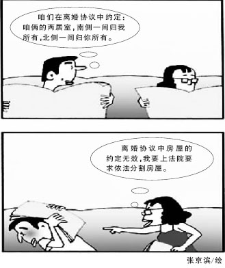 索先生與張女士于2005年3月14日協(xié)議離婚,針對雙方共同所有的登記在張女士名下的一套兩居室房屋,雙方在離婚協(xié)議中約定:南側一間歸索先生所有,北側一間歸張女士所有。2007年1月,張女士起訴到法院,要求確認離婚協(xié)議中有關房屋的約定無效,請求依法分割房屋。 北京一中院審理后認為,物權是權利人依法對特定的物享有直接支配和排他的權利。權利人要實現其對物的直接支配和排他的權利,須以國家公權力的保護為后盾。而國家公權力要實現對物權的保護,必須以確定物的范圍和界域為前提。一套房屋的范圍和界域內只能確定一個所有權,國家對不動產實行的統(tǒng)一登記制度中,不允許對同一套房屋登記兩個以上的所有權。因此,不動產雖然可以由兩個以上個人共有,但成套建造的單元樓房不得由兩個以上個人分別所有該套房屋內的不同房間。 索先生與張女士的離婚協(xié)議約定:兩人共有的兩居室房屋中南側一間歸索先生所有,北側一間歸張女士所有,違反了一物一權(所有權)的基本原則,該約定無效。張女士起訴要求確認離婚協(xié)議中的該約定無效,符合《物權法》的相關規(guī)定,應予支持。 此案經過兩級法院的審理,北京市一中院作出終審判決,判決確認雙方離婚協(xié)議中有關房屋的約定無效,一套兩居室房屋歸張女士所有,張女士給付索先生房屋折價款。