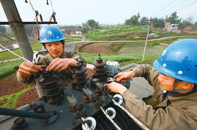 重慶市永川區(qū)供電分局雙竹供電所從3月起組成3支檢修小分隊,陸續(xù)對轄區(qū)內(nèi)的24臺變壓器進行預(yù)防性檢修,以增強供電運行的可靠性,確保農(nóng)民春耕用電所需。圖為3月19日,電力職工在認真檢修變壓器。