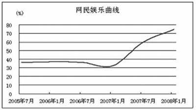 根據中國互聯網絡信息中心(CNNIC)歷年的互聯網統計調查結果可以看出,目前中國互聯網的突出應用是網上娛樂。這種應用的快速發(fā)展可以說是由網民的特征決定的。當前互聯網上比較熱門的娛樂應用有網上聊天、網絡游戲、在線影視、在線音樂等。在CNNIC2008年1月份最新的統計報告中,這四項應用分別位于網民網絡應用的第2、6、3和1位。我們可以粗略的從網民對這四項應用的使用率來反映中國網民的網上娛樂情況。通過自2005年6月以來的連續(xù)6次調查數據,我們可以勾勒出中國網民的娛樂曲線。 總體來看,我國網民娛樂應用的使用率逐步提升。隨著中國網民基數的不斷增加,這種提升顯然是迅猛的,在2007年一年中更是扶搖直上。數據顯示,這四項應用的用戶群中2007年分別增長了12367.5萬人、8808.8萬人、11175.9萬人和13473.2萬人。這顯然是個不容忽視而且潛力巨大的市場。因此聊天、視頻、音樂等網站的客戶量猛增帶來了點擊量的猛增,更把一些網游公司送進了股市。由此一些年輕的視頻公司驚呼中國互聯網的視頻營銷機會成熟了,視頻營銷元年到了!這意味著這些視頻公司將不再只是燒錢,而是馬上就可以大把大把的收錢了。 再進一步合并這幾條曲線:我們假定這四方面構成了100%的網上娛樂,分別給予20%、30%、30%和20%的權重,這樣就可以得出如圖所示曲線。 我們把圖2中這條經過對這四項應用進行粗略加權后的曲線稱之為網民娛樂曲線。這條曲線正如2007年中國的股市,極度刺激著相關互聯網企業(yè)的興奮神經。與圖1中的四條曲線相比,這條娛樂曲線更接近網絡影視增長曲線。由此可見,中國網民的網絡影視曲線就近似反映了中國網民的娛樂曲線。 對于這條保持高速增長的娛樂曲線,在2008年,或者更遠的幾年內,其發(fā)展走勢會如何? 我們可以從這些應用的相關推進元素進行考慮分析。首先,中國網民目前處于快速增長期,預計到2008年底網民數將會達到2.85億人。這個基數的增加無疑會帶來更多的娛樂網民。其次,這四項應用的功能越來越強大,操作越來越傻瓜化,內容也將越來越豐富。這些應用給網民帶來的便利、給網民帶來的精神與體驗滿足感,都會吸引更多的網民參與進來。再次,中國奧運年也會對娛樂推動不小。在奧運期間,各種媒體會爭先報道奧運信息,不止是競爭在信息量、播報時間上,更是在新的報道平臺和渠道上,在新的媒體技術上;ヂ摼W的及時特性、聲像圖文并茂等優(yōu)勢已經證明是娛樂信息的超強傳播渠道,再加上中國網絡帶寬的大幅增加、寬帶速度的大幅提高、3G服務的推出,以及手機上網、手機電視等新業(yè)務的重拳出擊,據此我們判斷,上述因素都會使中國網民的娛樂曲線繼續(xù)快速增長下去。 |