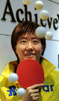 為備戰(zhàn)北京奧運(yùn)會(huì),中國(guó)乒乓球隊(duì)隊(duì)員郭炎、曹臻,中國(guó)籃球隊(duì)隊(duì)員杜鋒等來到國(guó)家體育總局訓(xùn)練局“成就運(yùn)動(dòng)視覺中心”進(jìn)行運(yùn)動(dòng)視覺能力訓(xùn)練。圖為郭炎在進(jìn)行動(dòng)態(tài)視覺測(cè)試。