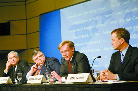 聯(lián)合發(fā)展委員會會議結(jié)束標志著世界銀行和國際貨幣基金組織今年春季會議的閉幕。世行和國際貨幣基金組織聯(lián)合發(fā)展委員會于1974年成立,其宗旨是研究全球發(fā)展問題。該委員會通常一年舉行兩次會議。 |