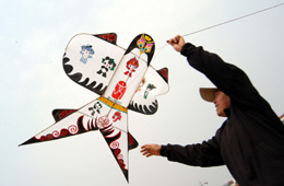 一場“迎奧運”風箏比賽日前在濰坊市寒亭區(qū)體育場舉行,28支風箏放飛代表隊參加了比賽。參加比賽的風箏多以“福娃”“五環(huán)”“巨龍”等與北京奧運會有關(guān)的內(nèi)容為題材。