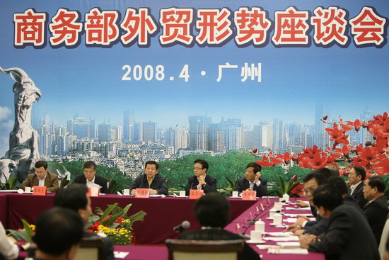 4月15日,第103屆中國(guó)進(jìn)出口商品交易會(huì)(廣交會(huì))在廣州開(kāi)幕。商務(wù)部長(zhǎng)陳德銘到會(huì)視察了廣交會(huì)琶洲展館,并邀請(qǐng)部分參加廣交會(huì)的地方商務(wù)主管部門、進(jìn)出口商會(huì)負(fù)責(zé)人及企業(yè)代表舉行外貿(mào)形勢(shì)座談會(huì),了解當(dāng)前我國(guó)外貿(mào)發(fā)展形勢(shì),聽(tīng)取地方、企業(yè)對(duì)保持出口穩(wěn)定增長(zhǎng)的意見(jiàn)和建議。 商務(wù)部副部長(zhǎng)高虎城、部長(zhǎng)助理魯建華也參加了座談會(huì)。 |
