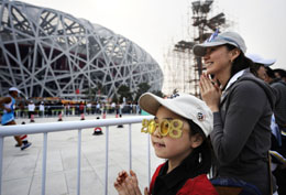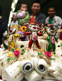 廚師切磋廚藝”大賽在西安市陜西師范大學(xué)舉行,50多名廚師精心制作了以“迎奧運”為主題的各類美食。圖為面點作品《奧運福娃》。