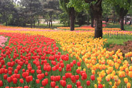 郁金香原產(chǎn)荷蘭,是該國(guó)的國(guó)花,后引種我國(guó),芳名四溢,早已成為春季賞花的重頭戲。郁金香體態(tài)優(yōu)美,高雅含蓄,亭亭玉立,色澤艷美,在花語(yǔ)中她代表了“愛(ài)的表白”,如果你是害羞內(nèi)向的人,不妨邀上心儀的另一半前往觀賞,借機(jī)表達(dá)愛(ài)意。當(dāng)然,來(lái)自國(guó)外的朋友也不妨到此一游,感受一下花開(kāi)異度依舊爛漫的情懷。 花期:4月中旬至5月上旬 景點(diǎn):北京中山公園 以“奧運(yùn)序曲——春天的暢想”為主題的中山公園第十三屆郁金香暨春花展覽于4月15日到5月上旬舉辦。展覽期間陸續(xù)展出50多萬(wàn)株,142個(gè)品種,13個(gè)類型的郁金香,并通過(guò)實(shí)物造型、人物雕塑及主題花壇相結(jié)合的布展手法,在園內(nèi)精心布展了“喜慶迎賓”、“歐洲風(fēng)情”、“和諧家園”、“異彩流芳”、“童話森林”、“百花迎春”等6個(gè)主題景區(qū)。30余種郁金香新品均是首次在本公園展出。