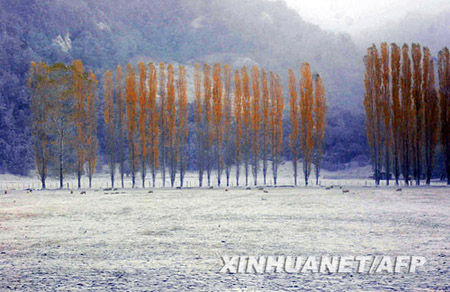 這是5月5日在智利首都圣地亞哥以南1300公里的富塔萊烏富拍攝的幾株小樹。新華社/法新
