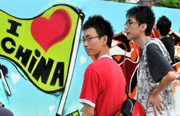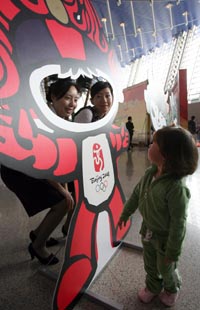 5月1日,青少年在塔石廣場(chǎng)上觀看迎接北京奧運(yùn)會(huì)的“創(chuàng)意涂鴉大比拼”作品。當(dāng)日,中國(guó)澳門特區(qū)在塔石廣場(chǎng)舉辦“中國(guó)澳門青年喜迎2008北京奧運(yùn)”活動(dòng),逾萬(wàn)名中學(xué)生及當(dāng)?shù)鼐用駞⑴c到活動(dòng)當(dāng)中。