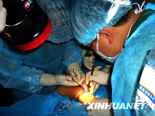 當(dāng)日下午,地震災(zāi)區(qū)青川縣木魚鎮(zhèn)轉(zhuǎn)來因余震骨折傷員。天津抗震醫(yī)療隊接到傷員后與沈陽軍區(qū)抗震野戰(zhàn)醫(yī)院取得聯(lián)系,立即在野戰(zhàn)醫(yī)院帳篷手術(shù)室打著手電筒為傷員進行骨科手術(shù)。