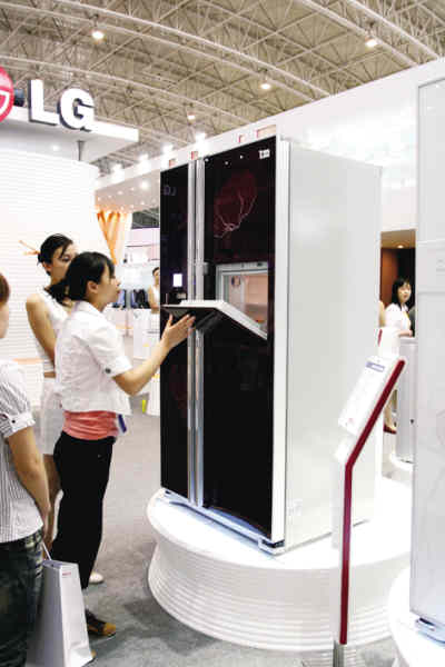 在展會(huì)現(xiàn)場,松下推出的目前最大的等離子電視,150英寸的大畫面顯示屏吸引了許多參觀者駐足觀賞!斑@真是把電影院搬回了家,但是比電影更清晰!币晃粎⒂^者這樣感慨。 三星電子則推出了3D立體影像的等離子電視。戴上特殊的3D眼鏡收看這樣的電視,用身臨其境四個(gè)字來形容觀者的感受恰如其分。 受地震影響的長虹也把最新的產(chǎn)品帶到了會(huì)場,推出了世界上第一臺(tái)“冰吧空調(diào)”。一臺(tái)漂亮的柜式空調(diào),左邊和普通空調(diào)無異,右邊卻是透明的玻璃門,里面可以存儲(chǔ)水果、紅酒、冰塊,既節(jié)能又環(huán)保。
