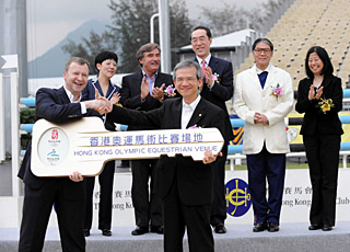 香港賽馬會26日在此間舉行儀式,將位于沙田的北京奧運馬術(shù)比賽主賽場移交給北京奧運馬術(shù)比賽承辦機構(gòu)——第29屆奧運會馬術(shù)比賽(香港)有限公司(簡稱奧運馬術(shù)公司)。 在儀式上,香港賽馬會行政總裁應家柏將一把金鑰匙贈送給奧運馬術(shù)公司總裁林煥光,象征場地正式移交。 香港特區(qū)政府政務司司長唐英年致辭時表示,奧運馬術(shù)沙田場館正式落成并移交,是香港籌備北京奧運和殘奧馬術(shù)比賽的一個重要里程碑。他說,馬術(shù)比賽場館經(jīng)過精心設(shè)計,處處體現(xiàn)“以馬為本”,在馬房環(huán)境、馬匹訓練、馬匹運輸以及化驗、廢物循環(huán)再用、應付惡劣天氣等方面都別出心裁,創(chuàng)造了多項世界紀錄。整個場館和相關(guān)設(shè)施都得到國際奧委會、國際馬聯(lián)、北京奧組委和專家的高度評價。 唐英年表示,5月2日北京奧運火炬在港傳遞圓滿舉行,充分顯示出香港社會對奧林匹克精神的認同以及對奧林匹克運動的支持,相信香港一定可以承辦好有特色、高水平的奧運和殘奧馬術(shù)賽事。 位于香港沙田的北京奧運馬術(shù)比賽主賽場可容納1.8萬名觀眾,賽場采用全天候沙面,排水量達每小時100毫米。賽場周圍建有6星級空調(diào)奧運馬房、馬匹診所以及13個練習場,其中包括世界首個空調(diào)室內(nèi)馬術(shù)練習場。比賽場地還設(shè)有4個馬匹降溫站,備有強力噴霧風扇和大量冰水,供馬匹在訓練和比賽后消暑降溫。大部分奧運馬術(shù)比賽將于8月9日至21日在沙田賽場舉行。 |