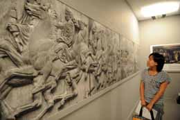 5月25日,一名觀眾在北京希臘之家參觀古希臘文明圖片。